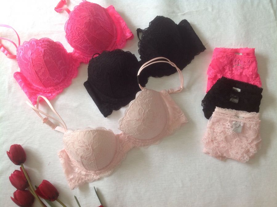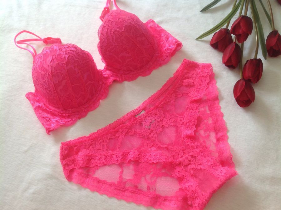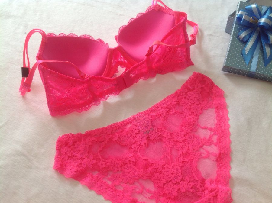Bộ đồ lót Victorias Secret vic 2 dây ren phủ Hồng neon